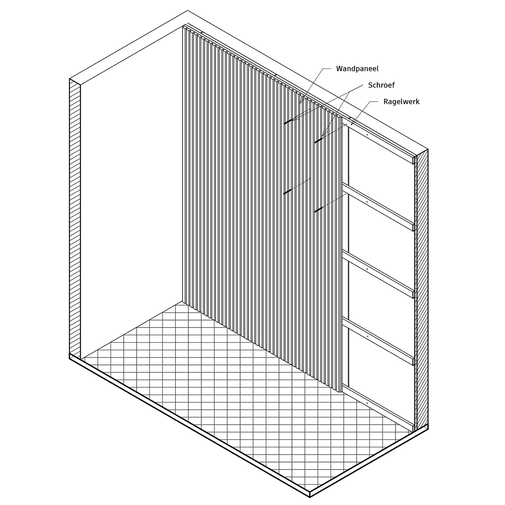 - Befestigen Sie die Paneele mit Schrauben an den Schwellen. Wir empfehlen 12 Schrauben pro Paneel.